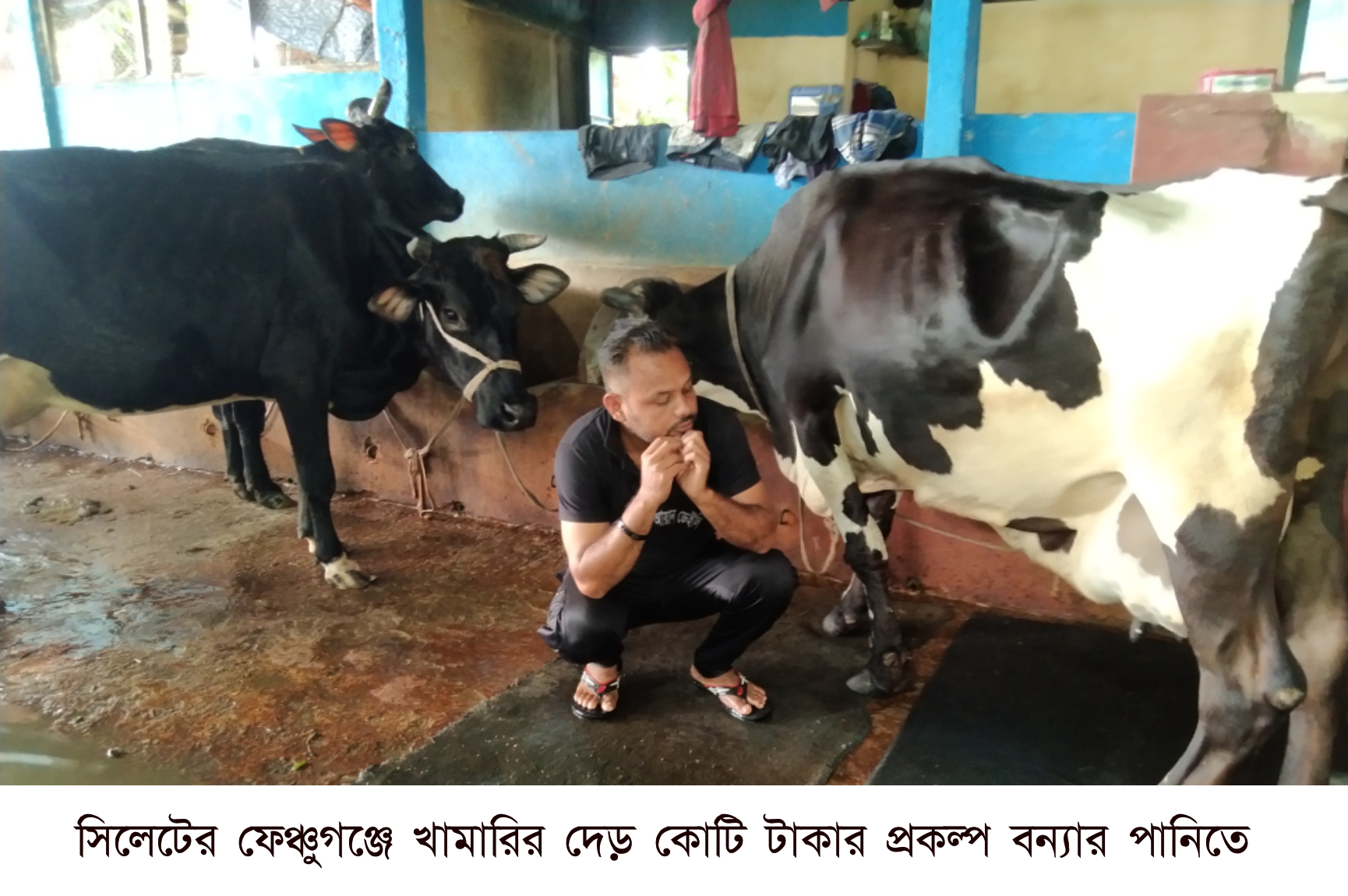 সিলেটের ফেঞ্চুগঞ্জ উপজেলার পশ্চিম ফরিদপুর গ্রামে ২০১৮ সালে স্থানীয় বাসিন্দা ফখরুল ইসলাম প্রধানমন্ত্রীর একটি বাড়ি একটি খামার প্রকল্পে উৎসাহিত হয়ে প্রথমে দেশী ও বিদেশী জাতের ৫২ টি গাভী ক্রয় করেন। পরবর্তীতে আরও ২৫ বিদেশি জাতীয় গরু প্রায় ৬৪ লক্ষ টাকা দিয়ে ক্রয় করেন৷ যা এবারের ঈদের সময় বিক্রি করার উদ্যোগ নিয়েছিলেন। এর মধ্যে এ পর্যন্ত ১২ টি বন্যার পানির কারণে খাদ্য সহ বিভিন্ন রোগে আক্রান্ত হয়ে মারা গেছে। বর্তমানে খামারে অসুস্থ অবস্থায় ১০ টি গরু আক্রান্ত রয়েছে। পাশাপাশি ফখরুল ইসলাম তার বাড়ির পাশে একটি মাছের খামারে ৪৫ লক্ষ টাকা বিনিয়োগ করেছেন। কিন্তু বন্যার পানিতে ইতমধ্যে খামার এবং মাছের প্রকল্প বিলীন হয়ে গেছে।
