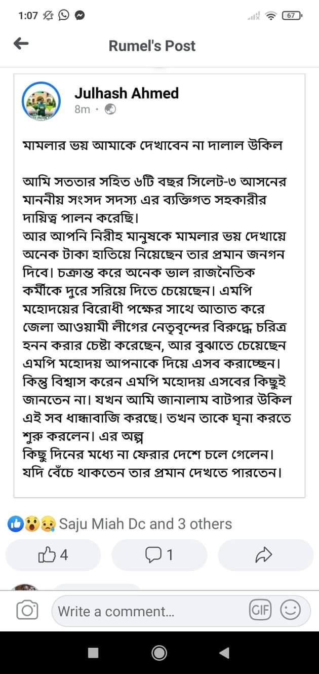 যা লিখেছিলেন গতকাল জুলহাস আহমদ –